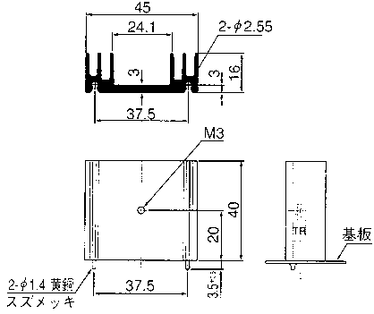 基板用ヒートシンク半導体とともにプリント基板に取り付けることができる小型ヒートシンクです。