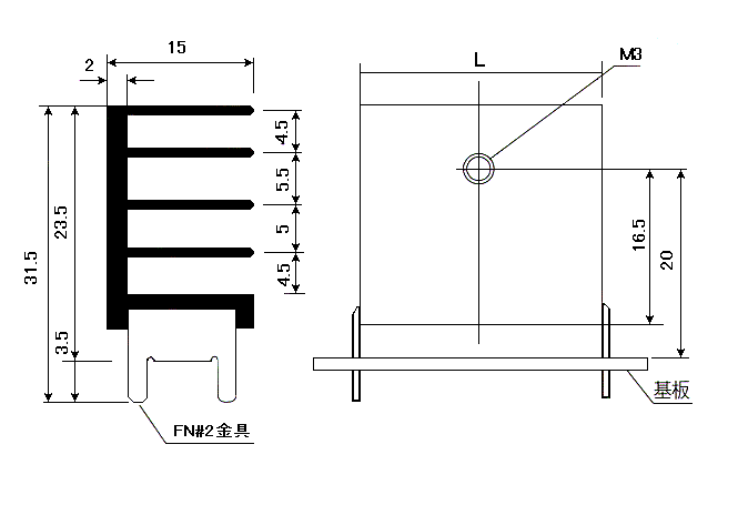 基板用ヒートシンク半導体とともにプリント基板に取り付けることができる小型ヒートシンクです。